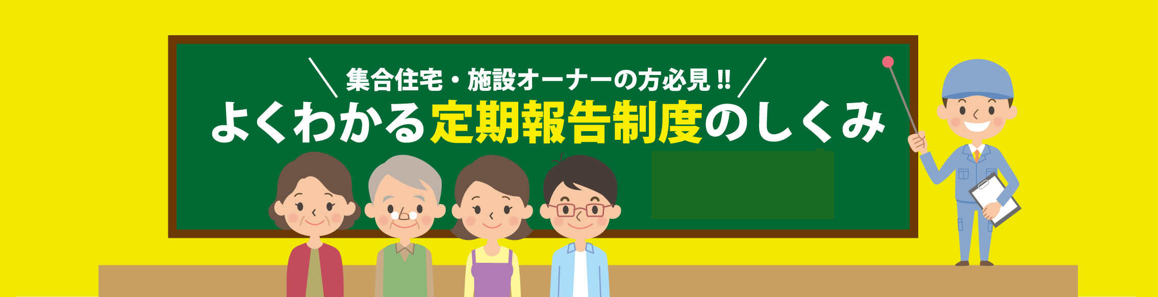 多数の人が利用する建物について、その劣化損傷状況や、防災上の問題点を把握するために 調査を行い その結果を報告する制度です。建築物の所有者(または管理者)が、対象物件を定期報告資格者に調査(検査)してもらい、その結果を特定行政庁に報告します。 報告者は建築物の所有者、または管理者です。